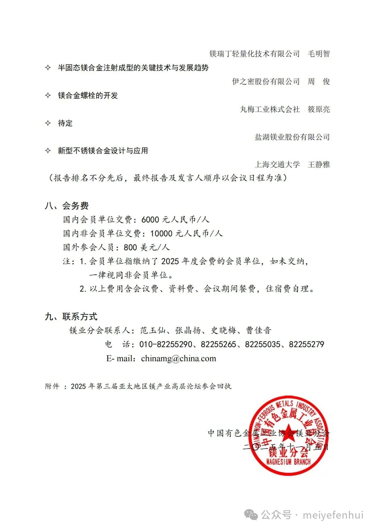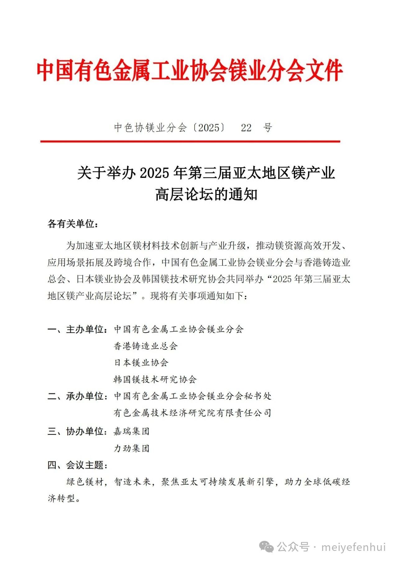- 关于举办2025年第三届亚太地区镁产业高层论坛的通...
